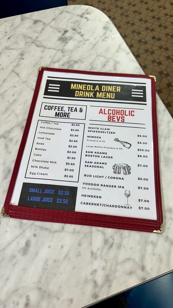 Introducing the menu at Mineola Diner: a delightful blend of classic diner favorites and innovative dishes that cater to various tastes. Nestled in Mineola, NY, this quaint diner boasts a cozy atmosphere, attentive service, and a menu brimming with options for breakfast, lunch, and brunch.